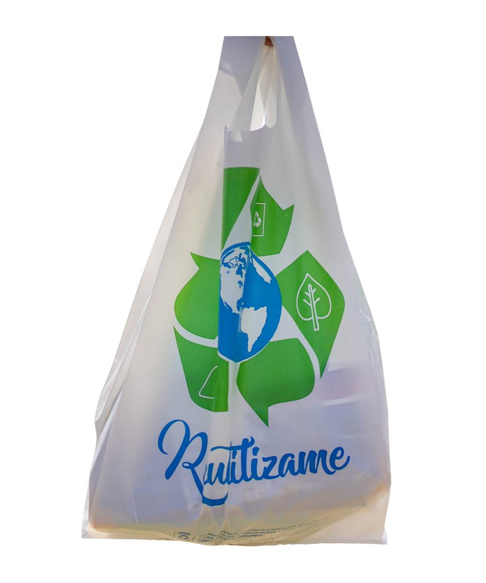 Bolsa fabricada en polietileno de alta densidad (HDPE), con plegado lateral y asas de tipo camiseta. Buena resistencia, ligera y económica. Ideal para alimentación y comercio minorista.